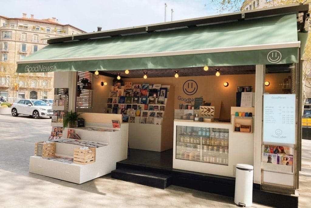 La cafetería itinerante Good News Coffee comenzó con contenedores metálicos en puntos estratégicos de la ciudad de Barcelona. Es una de las marcas que ha utilizado el diseño de tiendas móviles y modulares como estrategia para destacar rápidamente de la competencia.